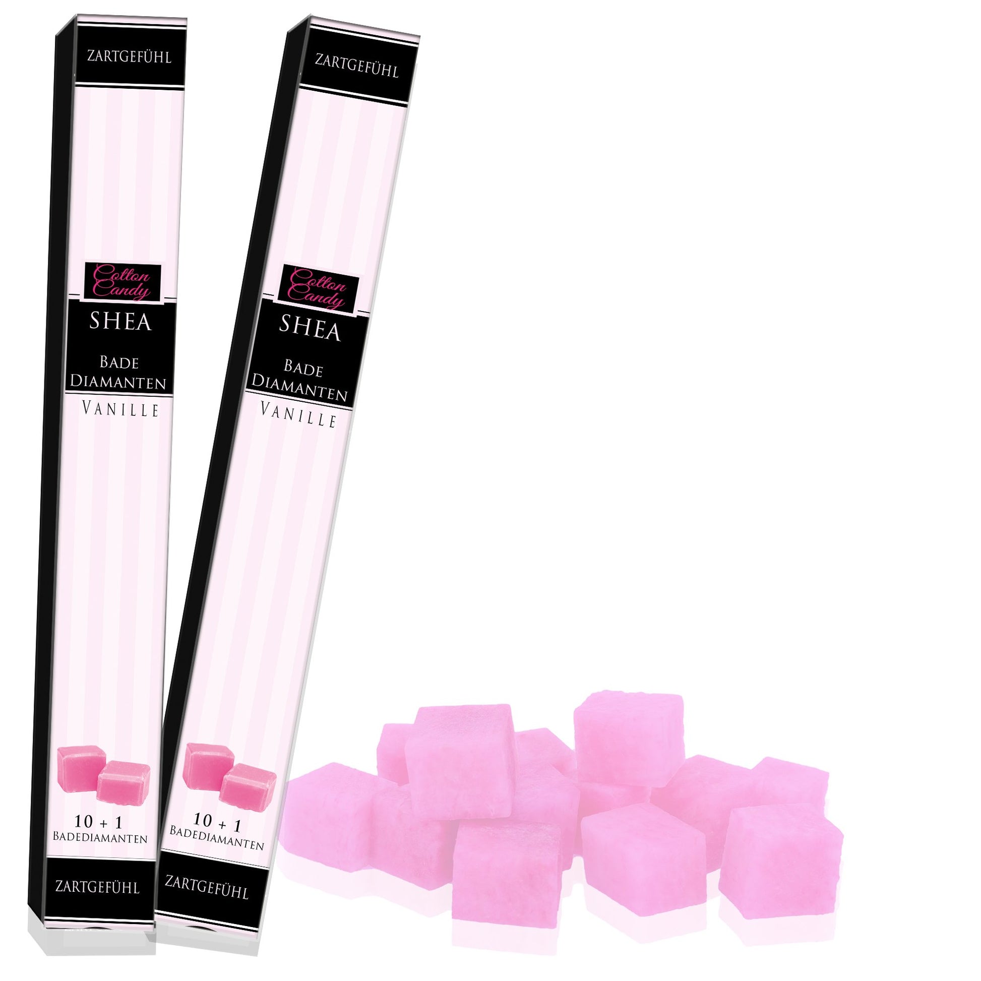 Zuckerwatte-Diamant hinzufügen: Gib den Cotton Candy Badediamanten ins Wasser. Während er sich auflöst, entfalten sich die wertvollen Sheabutter- und Kakaobutter-Öle. 🌸💎